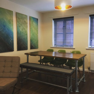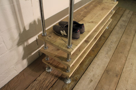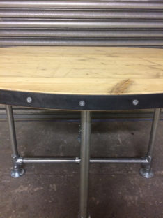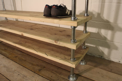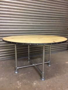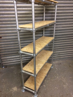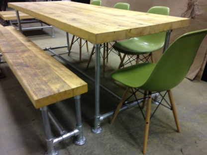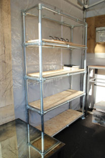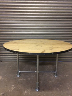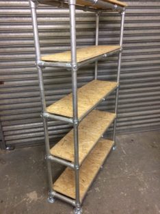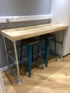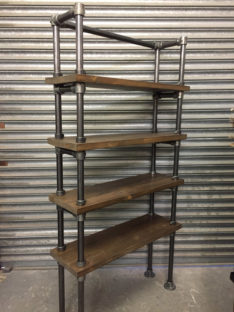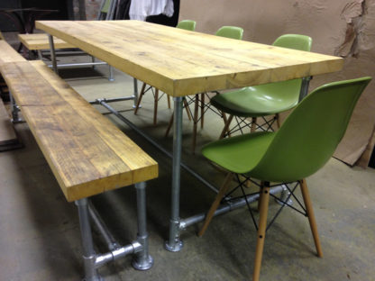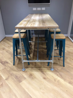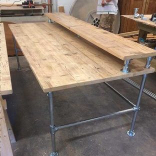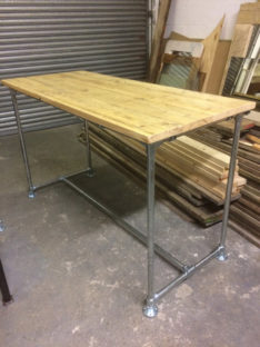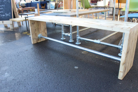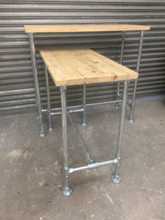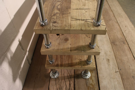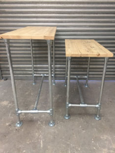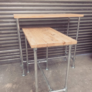 Many of our pieces are a combination of different materials from scaffolding constructions, as well as different solid woods that create unique, practical and fashionable pieces. For example, re-purposing the metal scaffolding pipes makes for excellent table and chair legs, book shelf structures, pretty much anything!